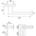 greenteQ kvaka sa rozetom DG 81L.UV inox m. od mat brušenog nerđajućeg čelika sa kvadratnim rozetama, sertifikovana u skladu sa DIN EN 1906:260040B, kategorija 2, BB, PZ i VC varijante sa kvadratnim vretenom od 8 mm. Kvaka je labavo postavljena na plastičnu podkonstrukciju i ima oprugu za držanje. Skriveni zavrtnji od kraja do kraja uključujući zavrtnje za debljinu vrata od 38–43 mm.