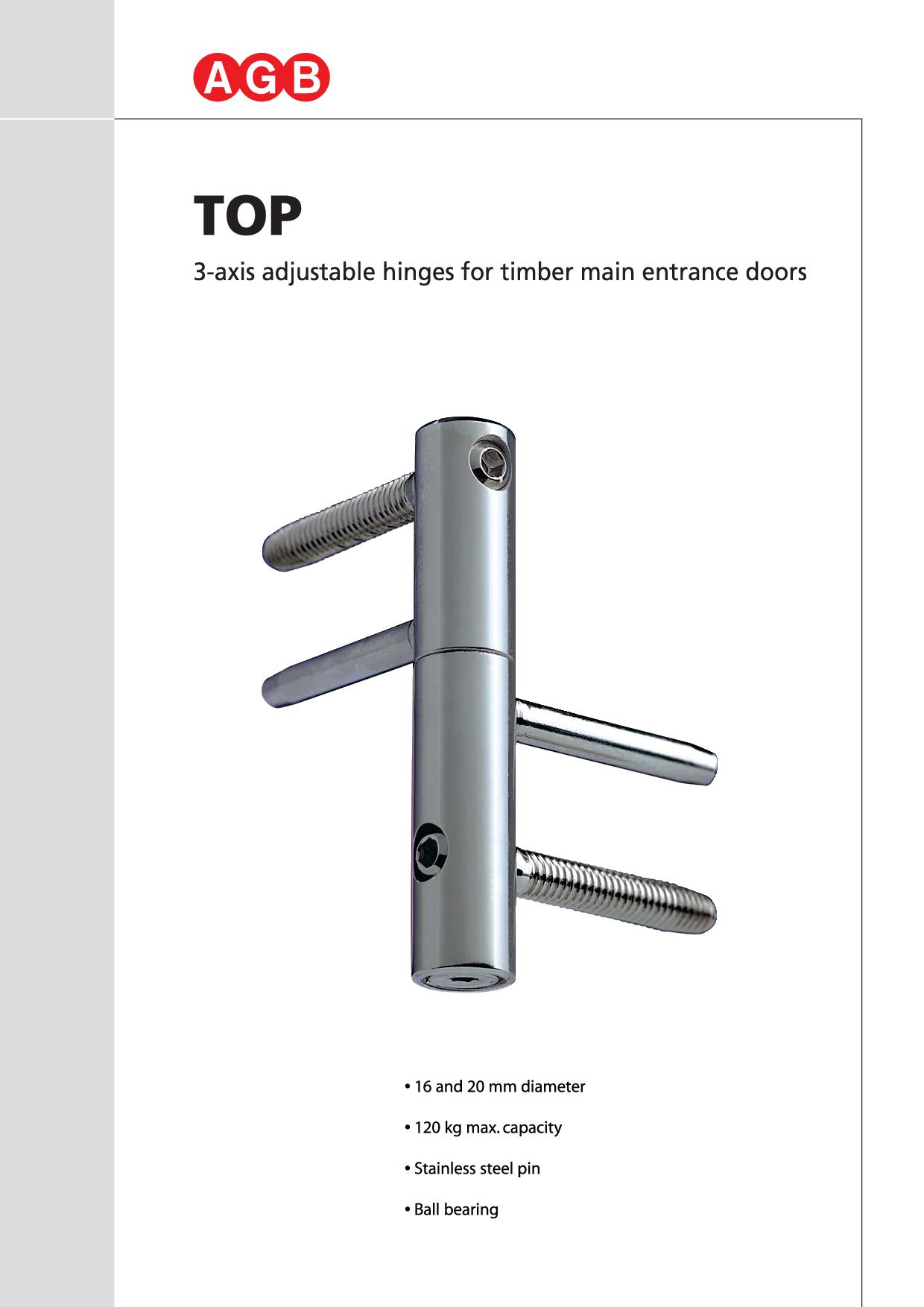 Podesiva šarka, prečnika 20 mm. Stožer na muškom telu je napravljen od nerđajućeg čelika kako bi se obezbedio nesmetan rad otporan na rđu. Okretna čelična kugla na kraju osovine obezbeđuje glatku rotaciju.